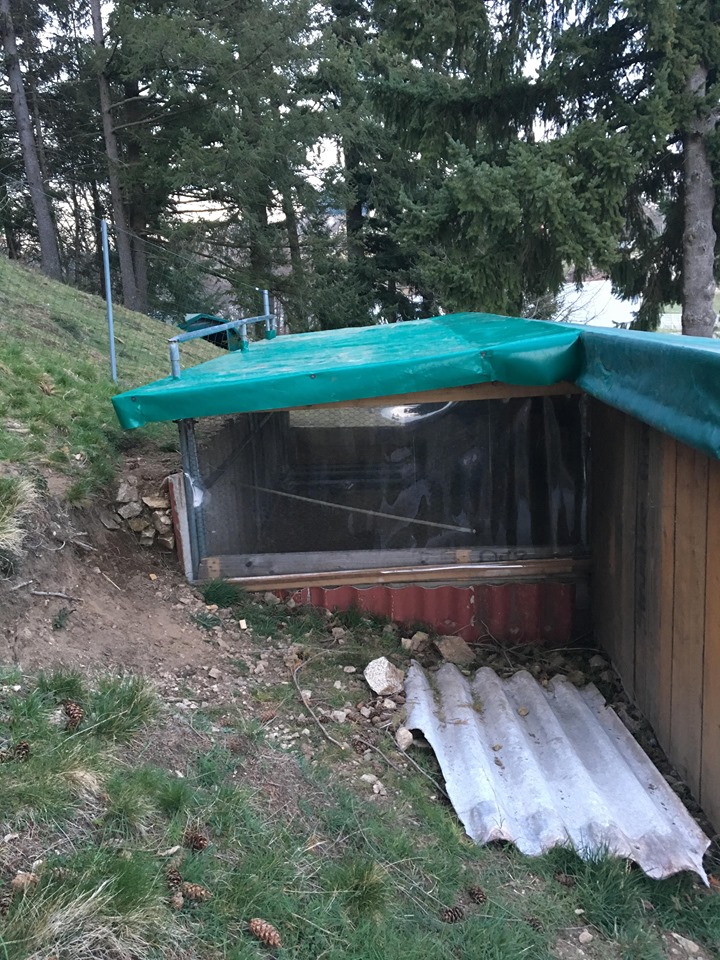 | Assez bonne conception de ton pigeonnier, avec l'utilisation de clapiers en béton qui sont très pratiques à nettoyer et surtout à désinfecter au chalumeau. Par contre il y a 2 choses que je trouve gênantes pour l'élevage: - La devanture de ton pigeonnier ainsi que le fond sont en grillage, ce qui va favoriser les courants d'air qui sont avec l'humidité les 2 principaux fléaux de l'élevage, facteurs de nombreuses maladies. - La planche d'envol devant tes cases devrait être séparée en 3 parties, de façon à ce que chaque couple ait sa propre planche. De cette façon tu éviteras d'éventuelles bagarres, et lorsque les jeunes tenteront une sortie du nid, ils ne risqueront pas de se faire tabasser par le couple d'à côté ou simplement de se tromper de case. Bonne saison d'élevage !