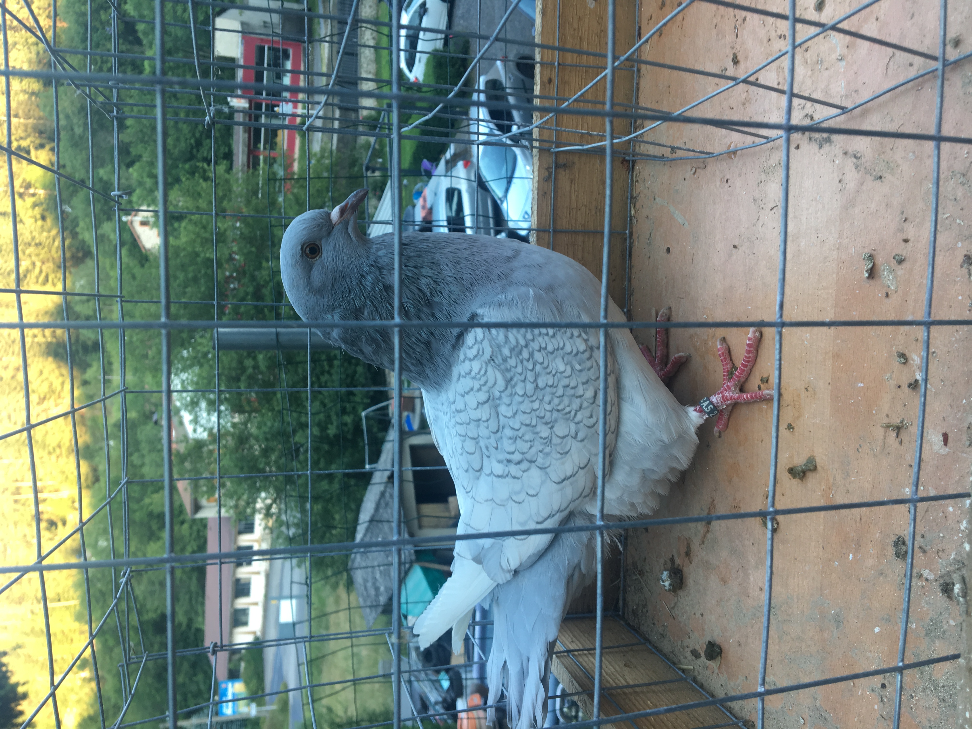 | Bonjour angelo J'aime bien ton mâle, la plume du maillage est très bien décidé, le maillage n'est pas fini, nous voyons qu'il reste encore les trois barres du plumage de bébé pigeon , mais je peux te dire que ton pigeon méritera un 96 s'il n'a pas de défauts caché. Content pour toi angelo, bravo Marcel 42